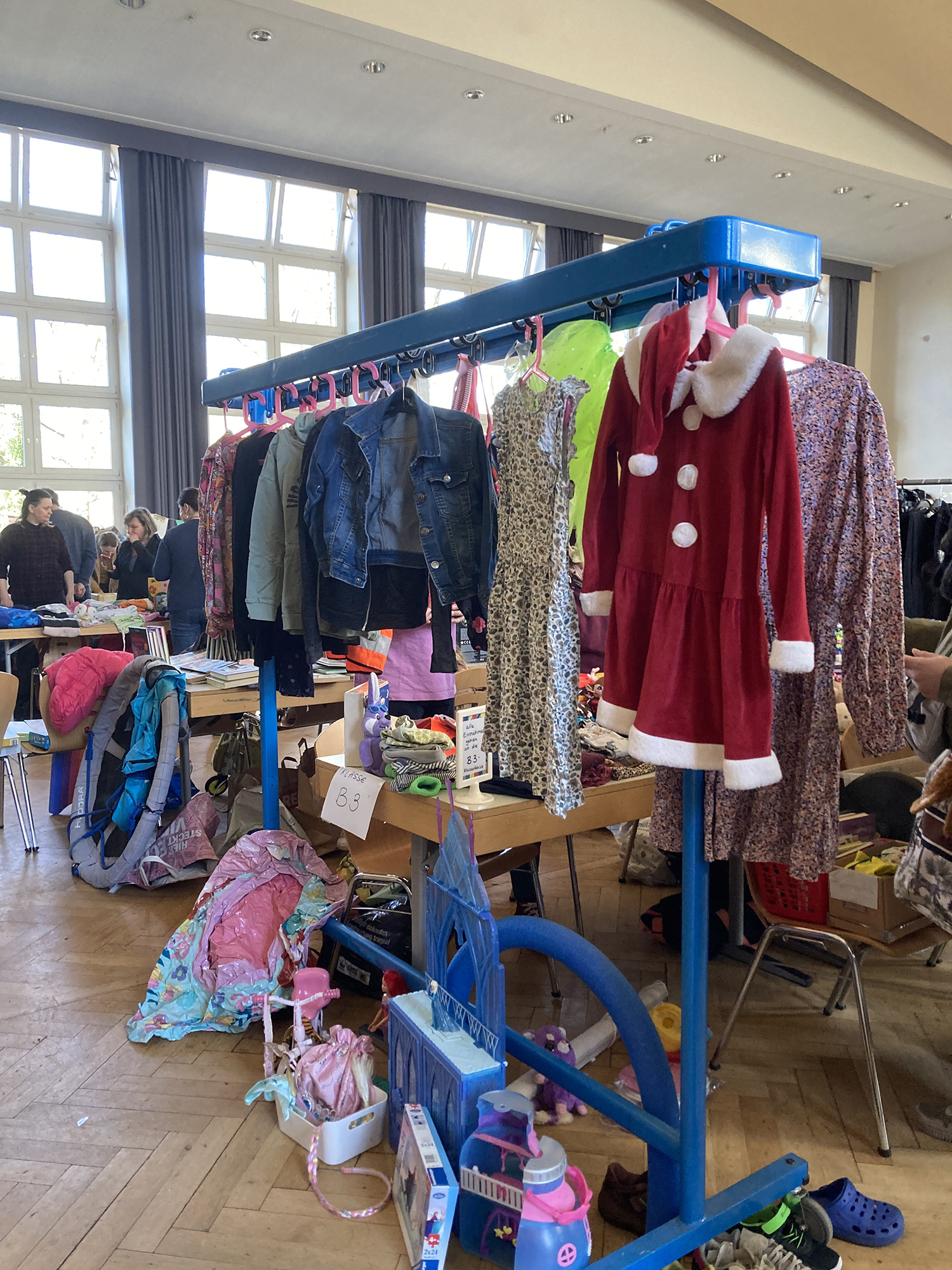 Insgesamt gab es rund 25 Stände mit einem vielfältigen Angebot. Besonders gefragt waren Kinderkleidung, Spiele und Schulsachen, sodass viele gut erhaltene Dinge neue Besitzerinnen und Besitzer fanden. Die meisten Stände wurden mit viel Engagement von den Klassen und Eltern organisiert, ergänzt durch einige private Anbieter, die das Angebot zusätzlich bereicherten.
